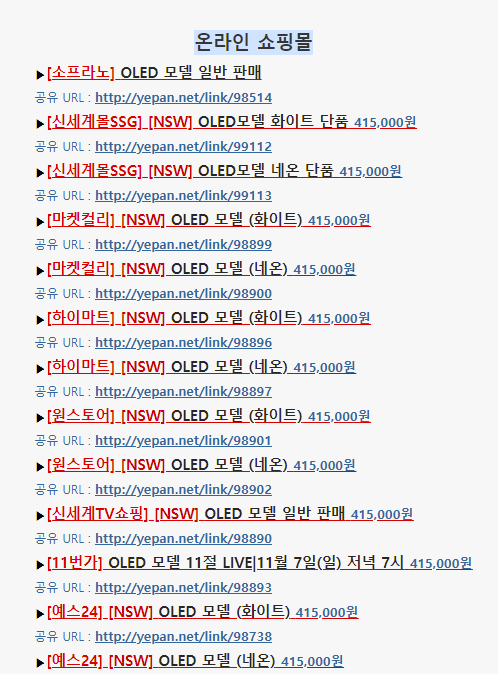 현재는 재고 소진된 사이트가 많아졌지만