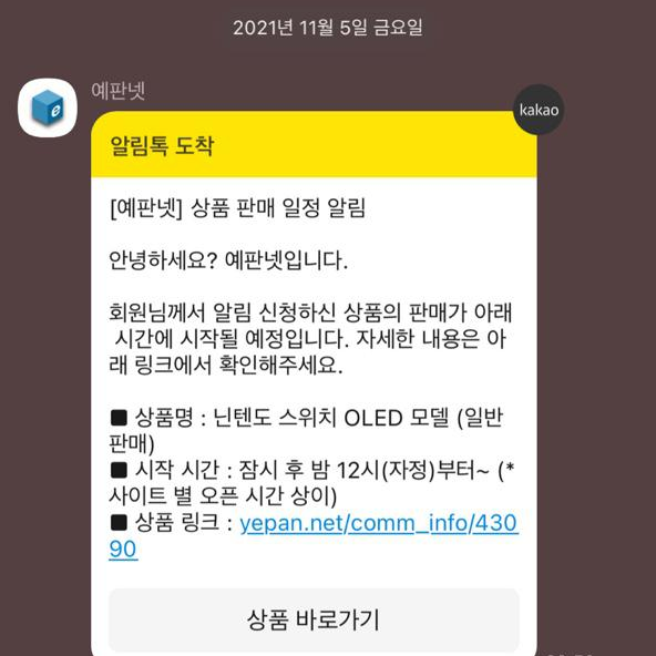 지난주 금요일, 예판넷에 등록해놓은 반가운 알림이 왔습니다.