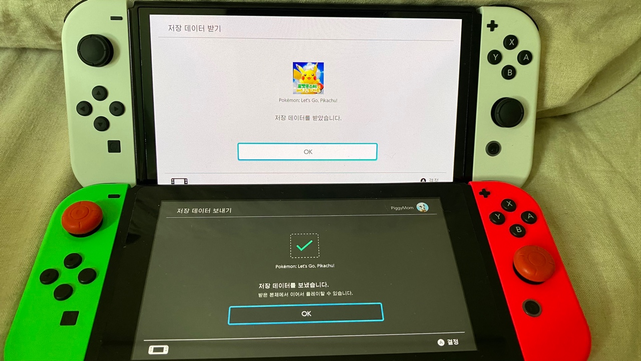 닌텐도 스위치 데이터를 옮기면서 스크린을 비교해보았습니다.