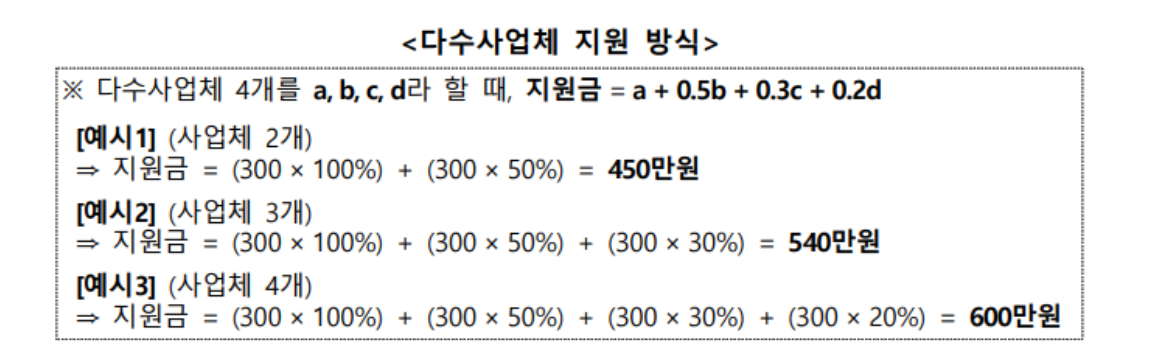 사업체 2개 450만 원, 3개 540만 원 4개 600만 원까지 지원받을 수 있습니다.