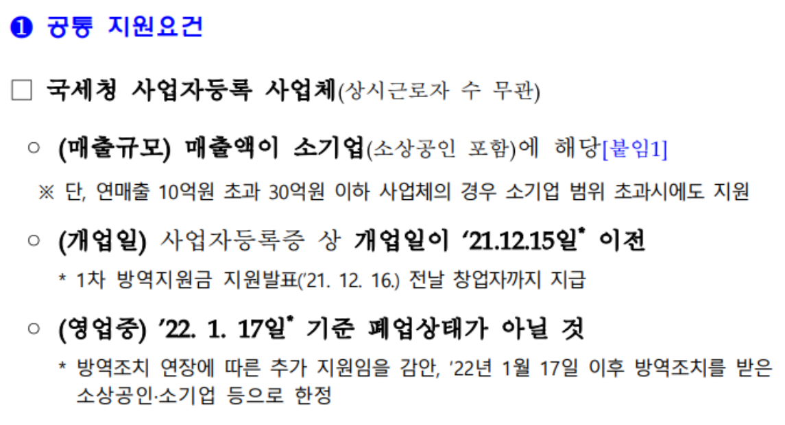 방역지원금 지원 요건