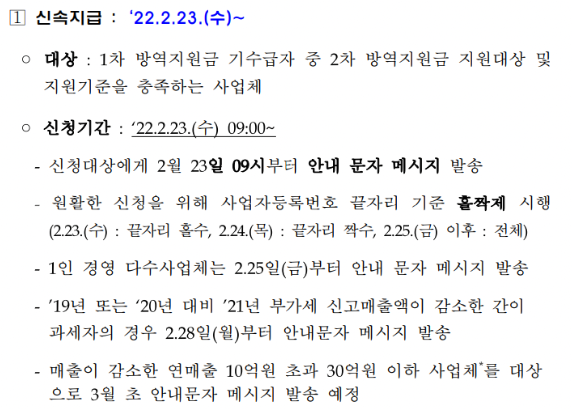 지원대상자 정보로 선별된 업체는 바로 지급됩니다. 새로 생긴 기준으로 신청 대상자가 됐다면 28일부터 3월 초까지를 지급 기간으로 받을 수 있습니다.