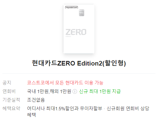 현대카드 ZERO Edition2(할인형)
